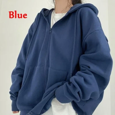 Casaul Oversized Zipper Sweatshirt for Women Autumn Loose Long Sleeve Hoodies Zipper Hooded Jacket Coats S-XXXL