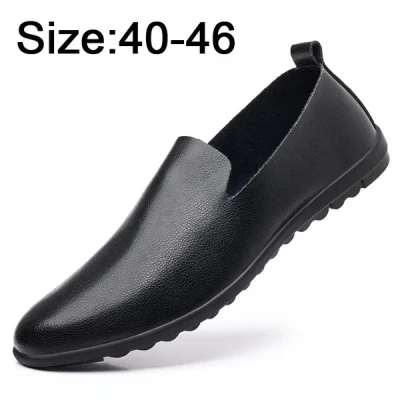 Men Handmade Black Leather Shoes Casual Driving Flats Slip-on Shoes Luxury Comfy Moccasins Shoes for Men Plus Size 40-46